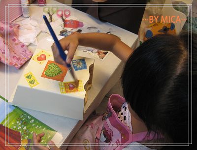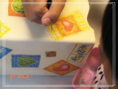 在用拼貼接著劑去刷在喜歡的圖案上..將它固定