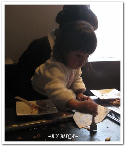 再以文字燒專門的 食具--小鏟子......一口一口優雅地享用